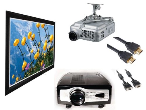 The bundle includes a 100" super quality Fixed Frame Screen, 5" projector matched ceiling mount, HDMI digital cable and SVGA cable. You can connect this system to your computer, TV Cable box, DVD or Game Machines. All items are brand new with their original manufacture warranty.